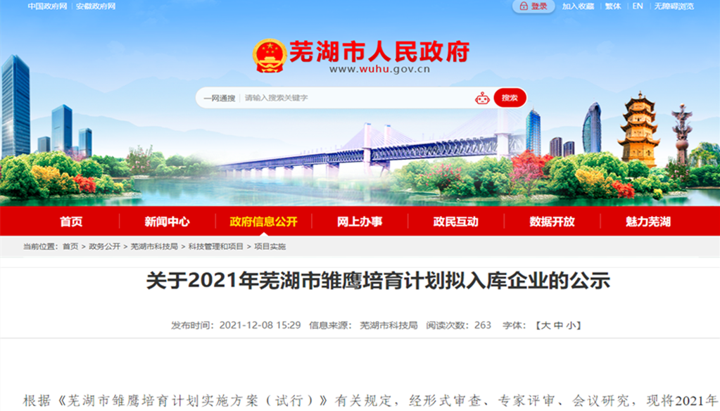 新聞喜訊2021年11月12日,由安徽省蕪湖市科技局組織“關于組織開展蕪湖市雛鷹培育計劃企業申報入庫工作的通知”評選工作,經形式審查、專家評審、會議研究,202...